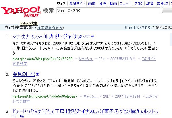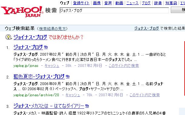 そうです。ご覧のとおり、ジョナス・ブログです。『ジョナス・ブログ』と入力しているにも関わらず、『ジョイナス・ブログ』を勧めてくる、この検索は。しかし、メジャーなキーワードが表示されるってのは良くあることです。では、その『ジョイナス・ブログ』とやらを見せてもらおうか!